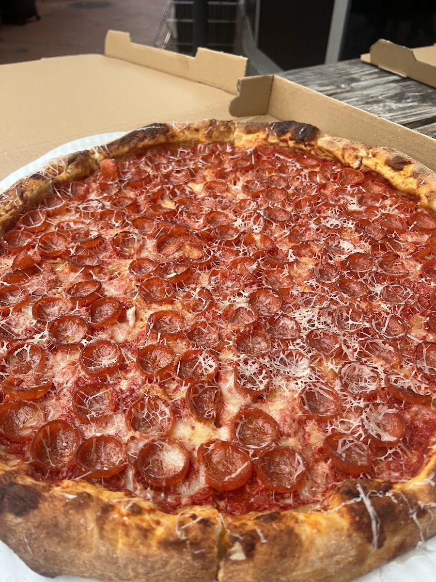 This is what I would say to be the BEST pizza I've ever had. Our first time here, we dined in, the wait was a bit long as indoor seating is limited, but absolutely worth the wait. The service we received was exceptional, and the pizza is the perfect amount of crispy, cheesy, and yummy goodness that you would want in a pizza slice. Please come with patience, as the line can get long most of the times. They offer a dine in or dine out option (with the dining out option you can sit outdoors), however the experience is the same. It's our go to pizza place and I can't recommend it enough.